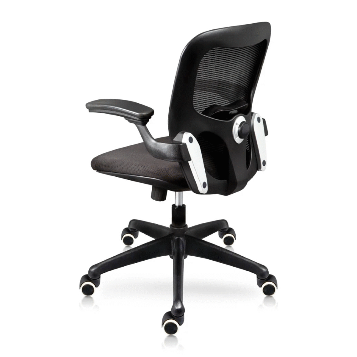 Material: Respaldo tapizado en malla con almohadilla lumbar ajustable, asiento tapizado en tela mesh, base de nylon, brazos con almohadilla de poliuretano suave.